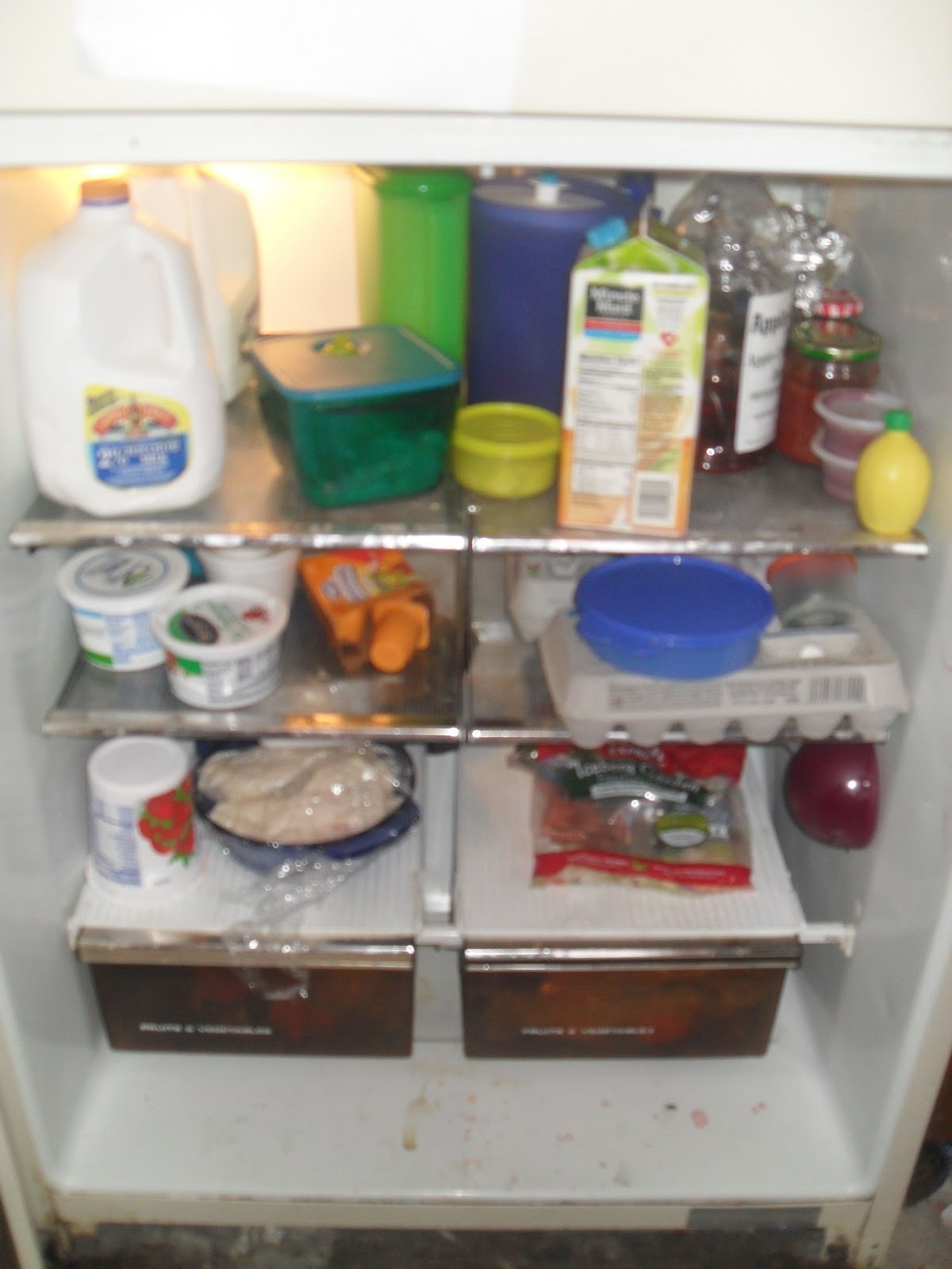And this my friends, is what we will be looking at being made over next Tuesday. It's yucky! The food is all good - just the shelves and the bottom and sides are not clean. It will get done though!